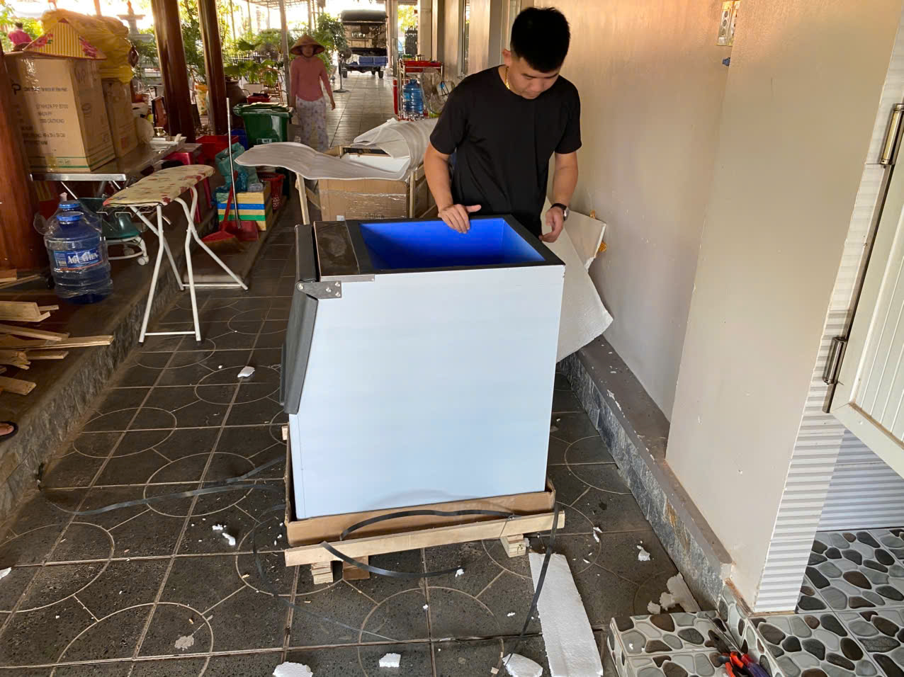 - Thiết lập nguồn cấp nước: Có thể dùng nước máy nếu làm đá với mục đích trưng bày, bảo quản. Còn đá dùng trực tiếp cho đồ uống, thức ăn thì phải được lọc qua các thiết bị làm sạch. Không để tiếp xúc quá lâu dưới nhiệt lượng lớn từ mặt trời, khiến nước bị nóng lên => thời gian làm đá lâu hơn.