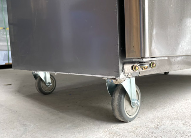 Với trọng lượng khủng, việc bưng bê công cụ bằng sức người từ chỗ này đến chỗ khác là điều không tưởng, rất dễ rơi vỡ gây hỏng hóc. Nhờ có hệ thống các bánh xe bố trí bên dưới thiết bị mà việc này nhẹ nhàng hơn nhiều, chỉ cần dùng 1 cánh tay đẩy đi là xong.