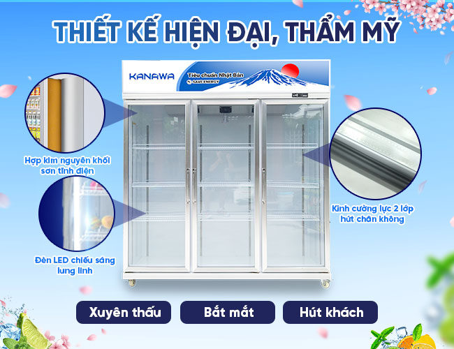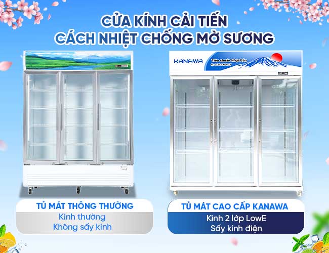 Cửa tủ được làm từ kính chịu lực trong suốt, bên ngoài tráng công nghệ low E, giúp hạn chế truyền nhiệt từ trong ra ngoài. Điều này không chỉ giúp thiết bị làm lạnh nhanh và ổn định hơn mà còn giúp tiết kiệm điện năng cho người sử dụng. Hệ thống hiện đại, giúp ngăn ngừa tình trạng đọng sương trên bề mặt kính. Từ đó, đảm bảo người dùng có thể dễ dàng quan sát từ ngoài tủ và có những trải nghiệm mua sắm tích cực nhất.