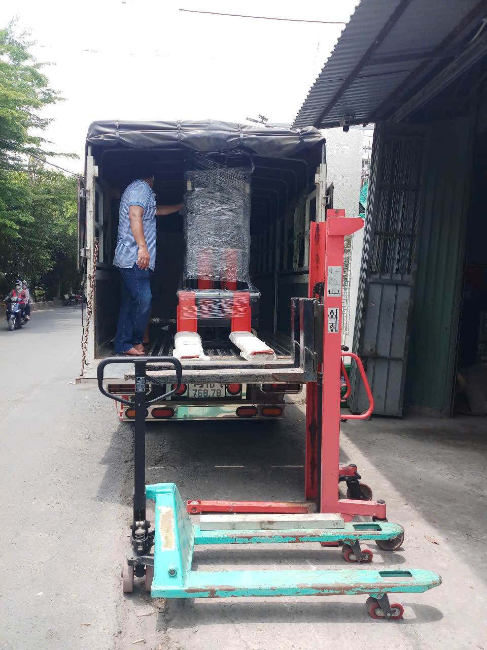 Xe nâng điện 2 tấn bán tự động ưu việt hơn xe nâng tay cao thường